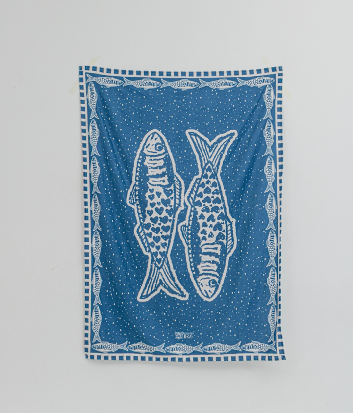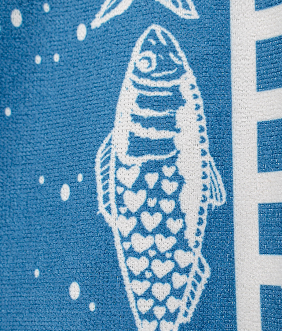 Leve mais conforto, praticidade e arte para os seus momentos de lazer com a Canga Atoalhada Sardinhas do Estúdio Ira.