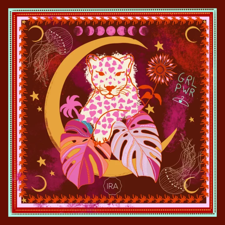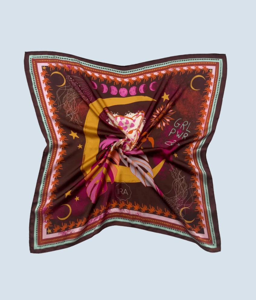 Feito em tecido 100% poliéster, nosso lenço Dona Onça possui um toque levemente acetinado, garantindo suavidade e elegância em cada detalhe. Com dimensões de 72 cm por 72 cm, ele é versátil para compor diferentes amarrações e estilos. Ideal para dar um toque especial aos seus looks, seja no pescoço, cabelo, bolsa ou como acessório de moda. As estampas exclusivas do Estúdio Ira trazem autenticidade e personalidade a cada peça.