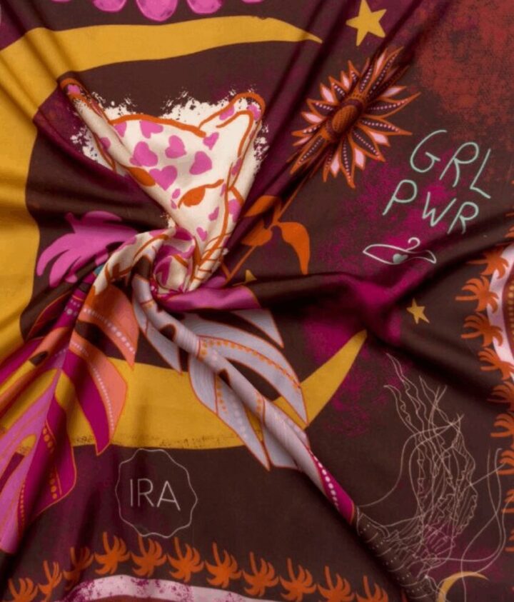 Feito em tecido 100% poliéster, o lenço Dona Onça tem toque levemente acetinado que garante suavidade e elegância em cada detalhe. Com 72 cm × 72 cm, é versátil para diferentes amarrações e estilos — ideal no pescoço, cabelo, bolsa ou como acessório de moda. Estampas exclusivas do Estúdio Ira trazem autenticidade a cada peça.